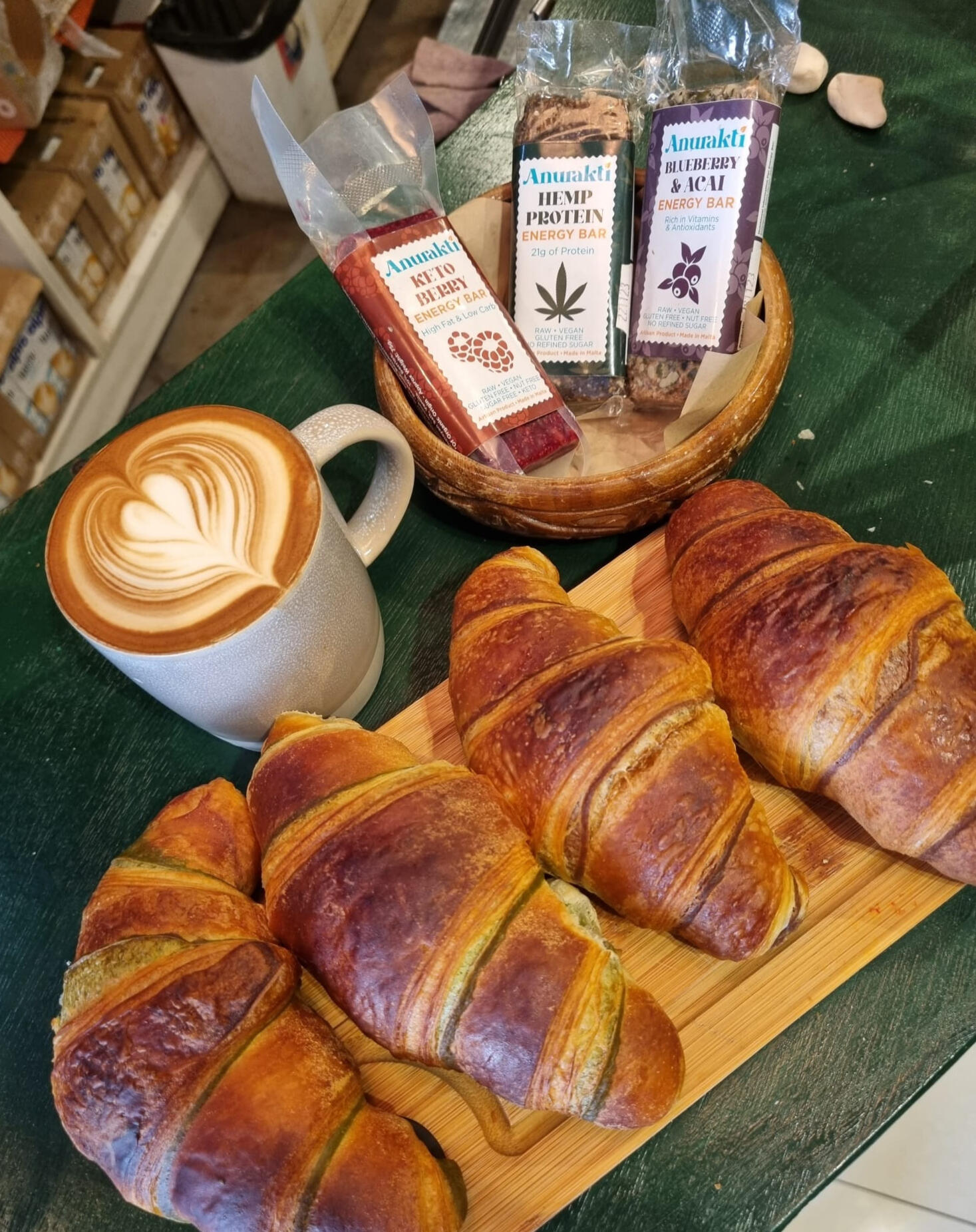 One can have Breakfast ranging from vegan Ham & Cheese Toasties, Croissants and amazing Coffee with Plant Milk.